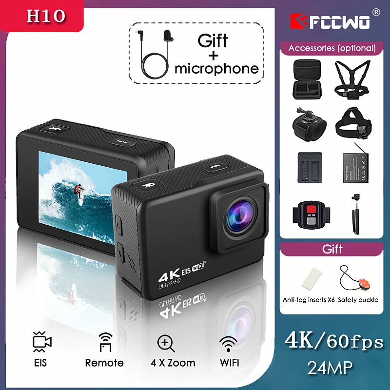 Fccwo H10 Action Camera 4k 60fps 24mp 2 0 Lcd Eis Dual Screen Wifi Webcam Waterproof Helmet Sports Video Cam Go Sport Pro Came Sports Action Video Camera Aliexpress
